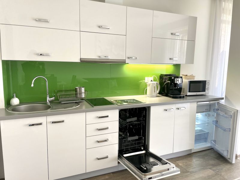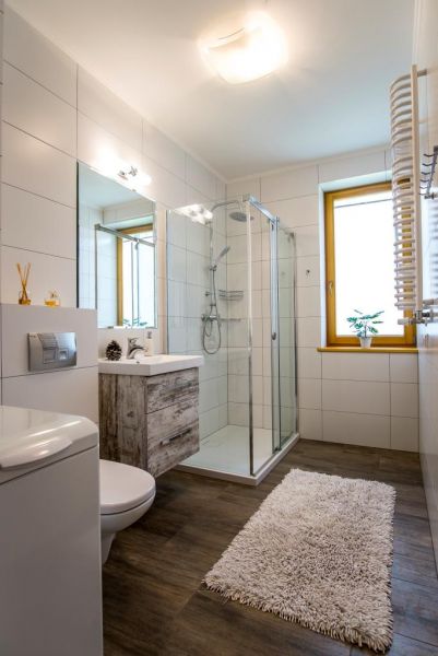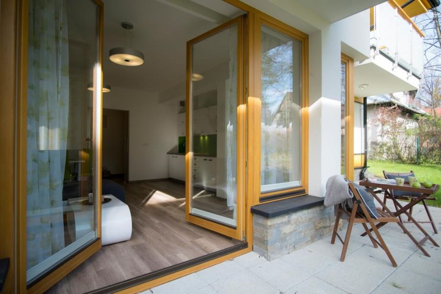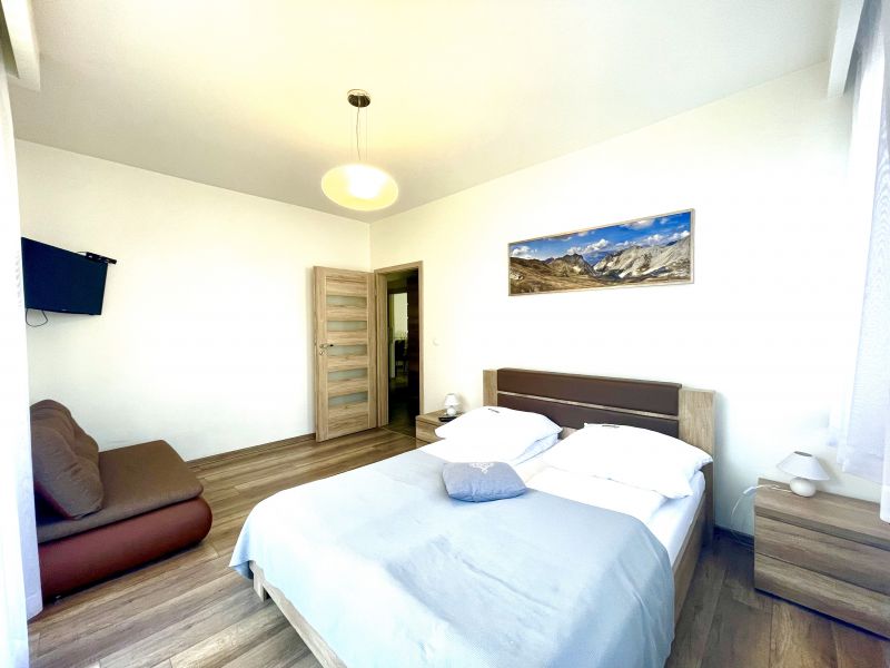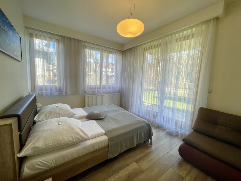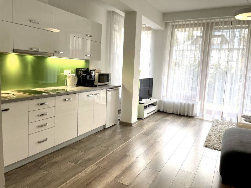 | ogólna ocena | Plusy: Apartament przestronny, duży plus to dwie toalety. Wyposażenie kuchni ok, właściwie są wszystkie niezbędne sprzęty na kilkudniowy pobyt. Przestronna kabina prysznicowa. Miejsce parkingowe w garażu. Minusy:Drzwi do lodówki otwierają się w inną stronę niż szafki, w której jest schowana. Lodówka nie jest przymocowana do szafki - grozi to wypadnięciem jej na posadzkę(ogólnie przy większej ilości osób pasowałaby większa lodówka). W łazience przydałyby się dodatkowe wieszaki na ręczniki, żeby łatwiej je suszyć. Bardzo płaskie i twarde poduszki w sypialni. | 5 |