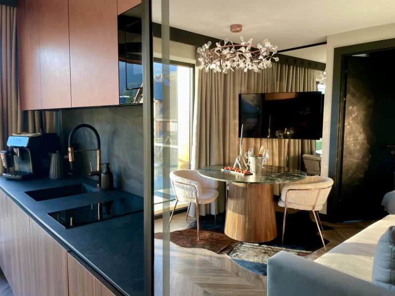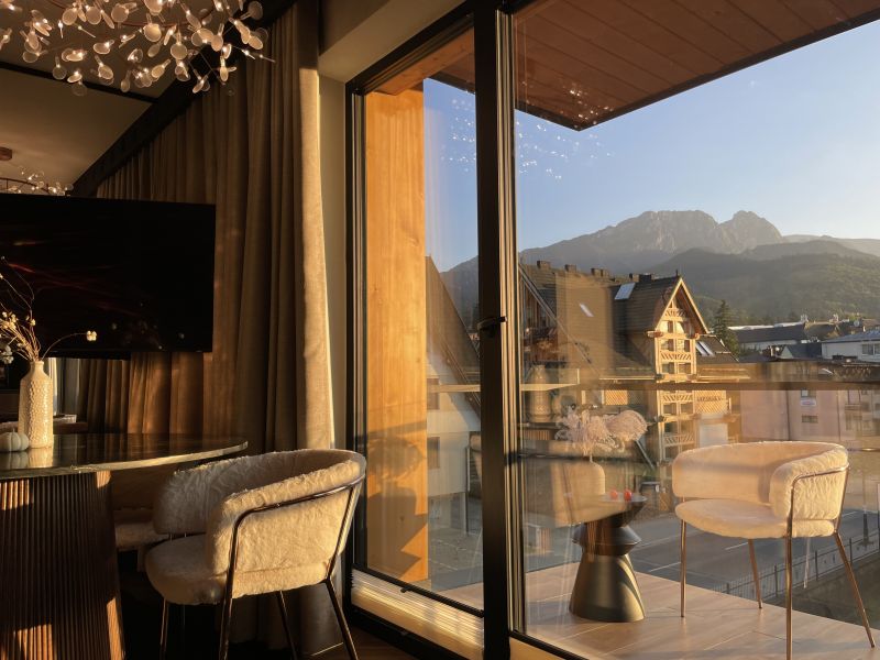 Prestiżowe wnętrze  o powierzchni 37 m 2 składa się z  sypialni , salonu z balkonem ze świetnym widokiem oraz wyposażonego  aneksu kuchennego i łazienki. Panujący tu klimat  łączył nowoczesność z tradycyjnymi elementami  regionu tworząc ciepłą domową atmosferę, a wysoki standard zadowoli  wymagających Gości.