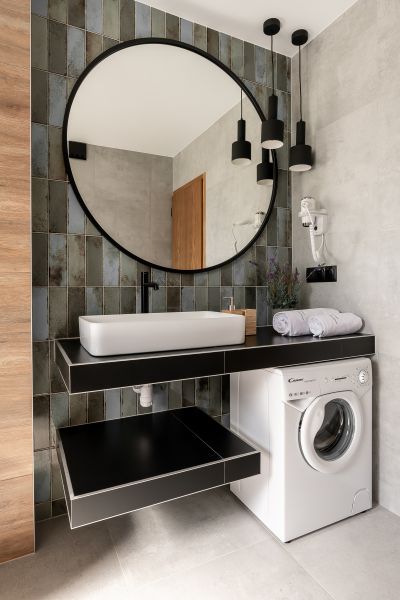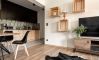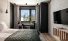 Nowość ! Apartament oferuje wnętrze utrzymane w tonacji szarości i butelkowej zieleni , naturalne drewno, ciekawe tapety i przytulne materiały tworzą klimatyczne otoczenie idealne do wypoczynku w górach.