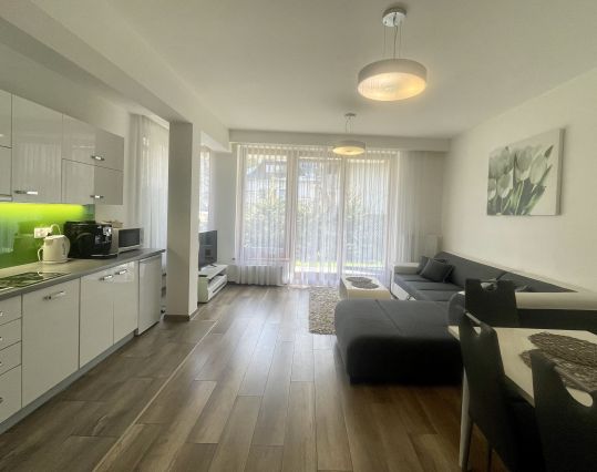 W nowoczesnym budynku z garażem i windą oferujemy Państwu komfortowy, przestrzenny i dobrze wyposażony apartament z tarasem.